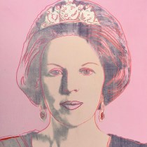 Afbeelding: detail van Pink portrait of Queen Beatrix, Andy Warhol/ 1984 See also: The changing face of Dutch monarchy * * * In 2005 verscheen op initiatief van Premsela De vorm van het koningschap. 25 jaar ontwerpen voor Beatrix. Het